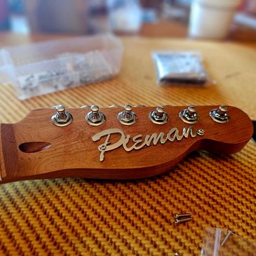 Loretta is a Fender telecaster style guitar with a brass wilkinson bridge, wilkinson twang master pickups, upgraded potentiometers and a custom pickguard. The body is resonant alder in a "Hart" yellow/gold.